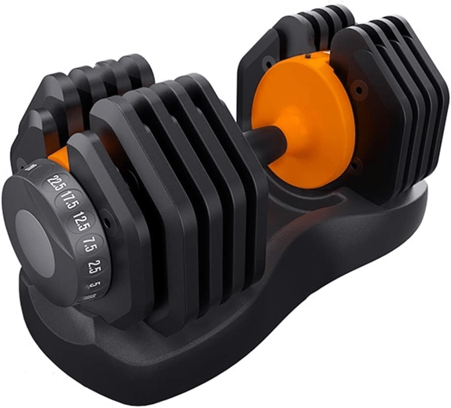 Each dumbbell can be adjusted from 5 to 52.5 pounds in 2.5-pound increments, giving you a total weight range of 105 pounds. This means you won’t need to purchase multiple sets of dumbbells to achieve a variety of weight options for your workouts.